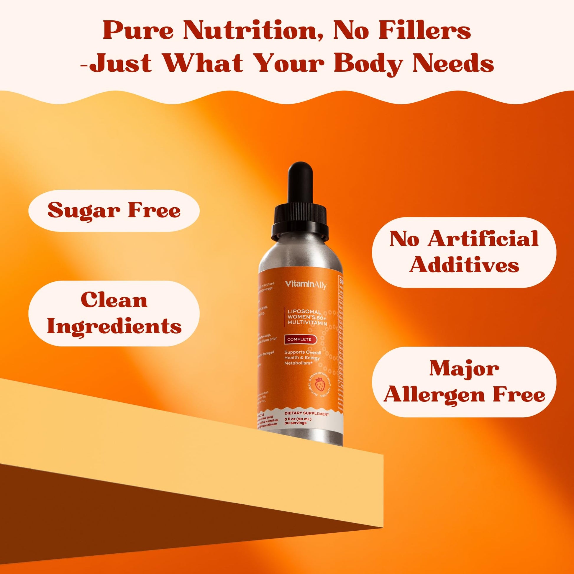 Vitaminally Women’s 50+ Liposomal Liquid Multivitamin – 16 Essential Vitamins & Minerals for Energy, Bone & Immune Support