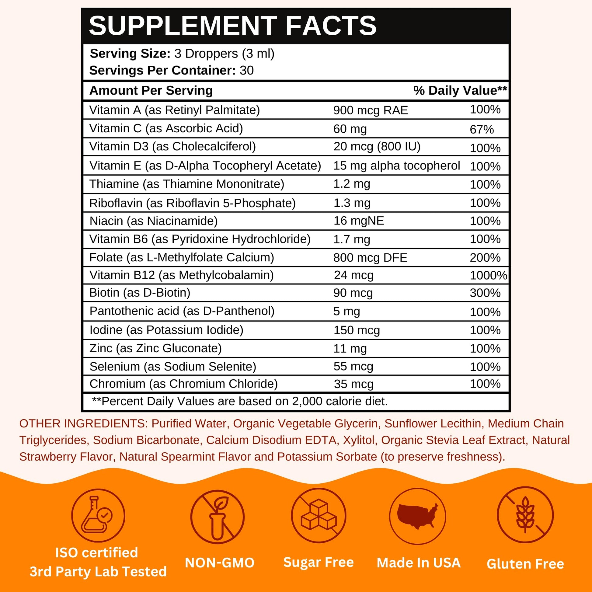 - Made in USA & 3rd Party Tested for Quality – Manufactured in USA and independently tested for purity by an ISO accredited third-party lab, so you can trust every drop of our high-absorption liquid multivitamin for women.